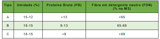 Tabela 2. Classificação de feno em função da qualidade
