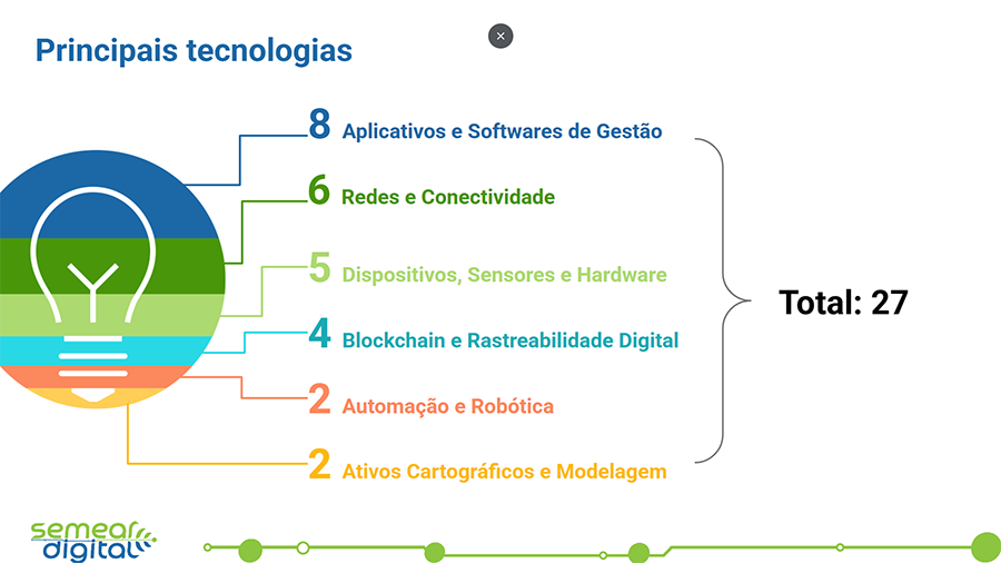 Entre os eixos de atuação estão: conectividade; IA e sensoriamento remoto; automação e agricultura de precisão; rastreabilidade e certificação digital. Também inclui parcerias e comunicação para constituir o ecossistema local necessário para a continuidade das ações.