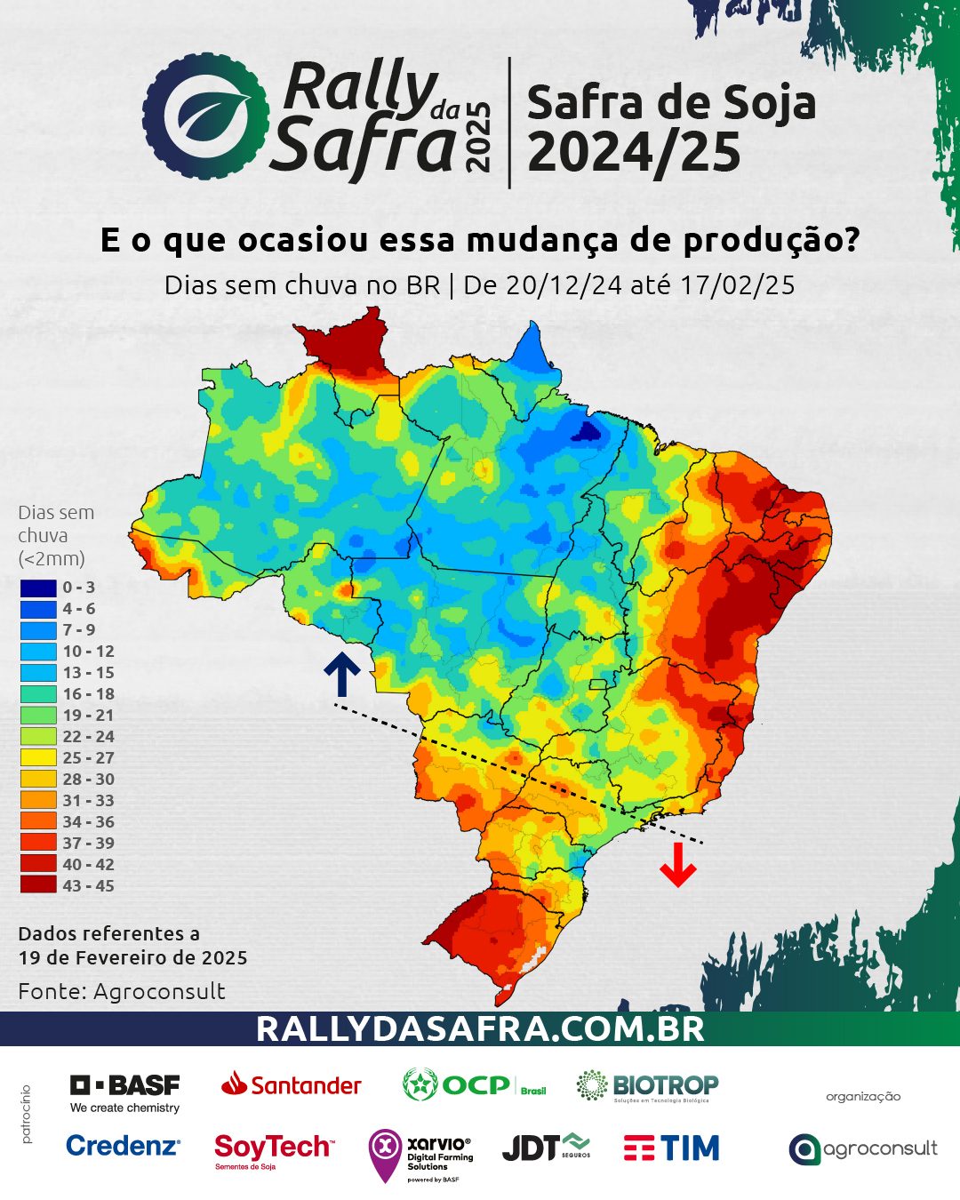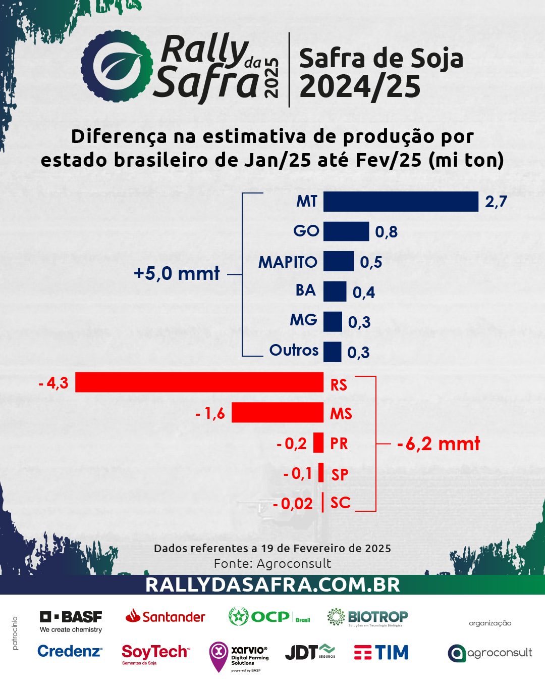 Quando analisamos os números gerais, revisamos nossa estimativa para 171,3 milhões de toneladas, uma redução de 900 mil toneladas em relação à previsão inicial. Mas, mesmo com perdas pontuais, a safra ainda será marcada pela força do Centro-Norte, que compensa as dificuldades do Sul.