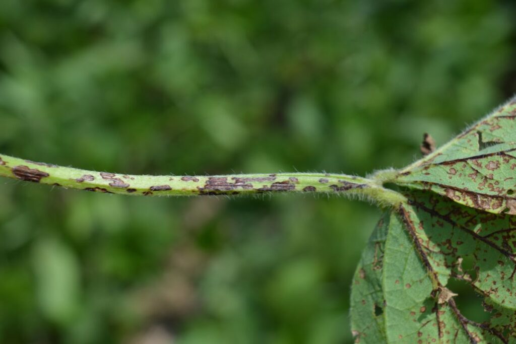 A Antracnose, causada pelo fungo Colletotrichum truncatum, afeta principalmente vagens, hastes e folhas da soja. Os sintomas incluem lesões que escurecem e se expandem, podendo levar à morte de plantas em casos graves.