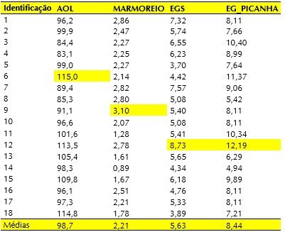 É interessante verificar que apesar da variação nos animais para as medidas em questão, verificamos valores excelentes para AOL, marmoreio e acabamento, uma vez que estamos falando de machos inteiros e confinados por um curto período, com uma dieta balanceada para não comprometer a qualidade do sêmen dos touros.