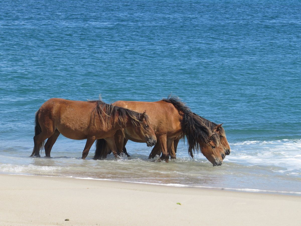 - No lado leste, onde não há lagoas, cavam poços na areia até atingir lençóis de água doce — uma estratégia rara entre equinos selvagens.