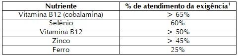 Tabela 1. Porcentagem de atendimento da ingestão diária de referência de 100 g de filé mignon magro cozido