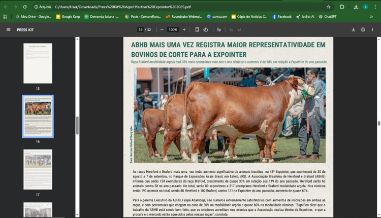 Azambuja recorda que a ABHB vem de um ótimo desempenho no Mundial Braford e Nacional Hereford, em maio deste ano. “Esse aquecimento de procura e o sucesso dos eventos alavancam os números da Expointer. Esperamos, portanto, fazer uma grande feira em Esteio, porque, em número de animais e em número de expositores, nós já tivemos uma bela demonstração e uma bela representatividade”, conclui.