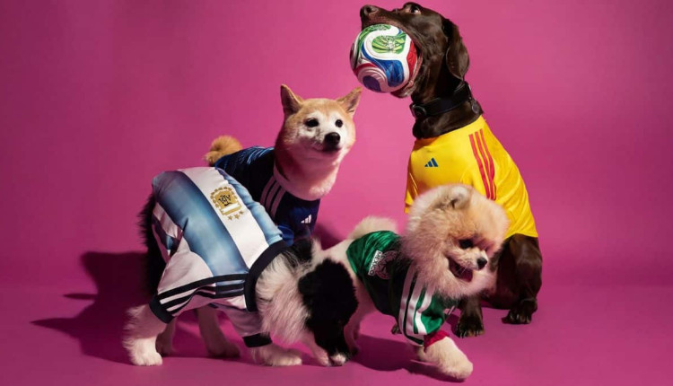 Coleção inédita da Adidas aposta em design idêntico aos uniformes das seleções e material sustentável para vestir animais de estimação antes da Copa do Mundo de 2026.
