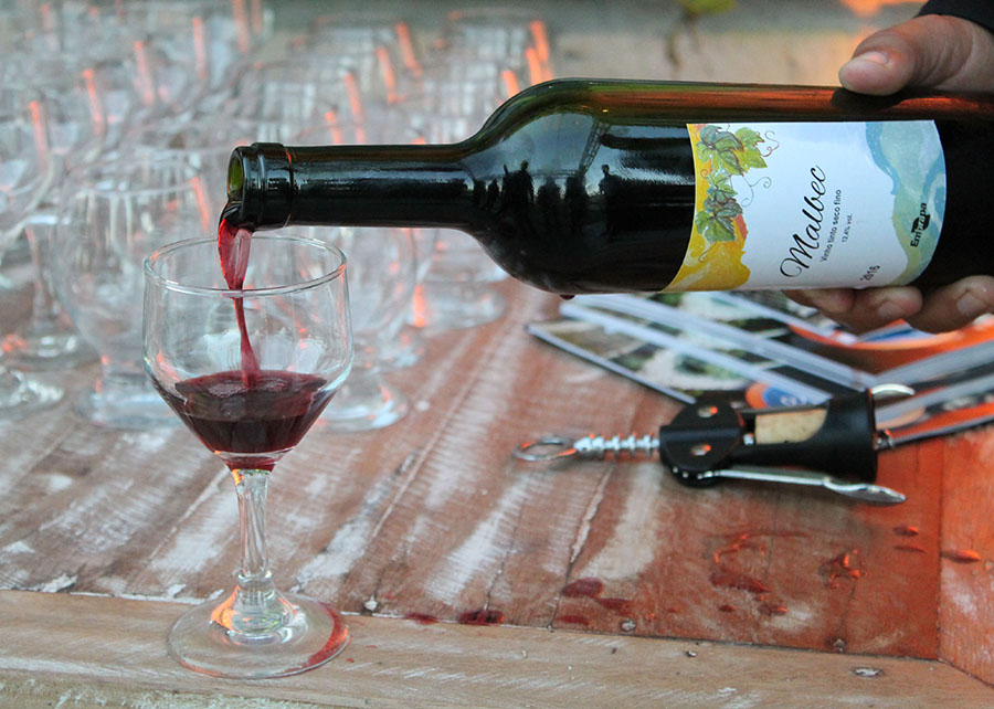 Malbec – O ciclo fenológico foi de 146 dias, com brotação média de 54,65%, alcançando produtividade de 10 toneladas por hectare, podendo chegar a 18 toneladas. Os cachos apresentaram massa média de 140 gramas. O vinho tinto seco jovem da variedade Malbec apresentou coloração rubi com reflexos violáceos, bom brilho e limpidez, aromas de frutas vermelhas e negras, notas florais e um sabor frutado com corpo leve.