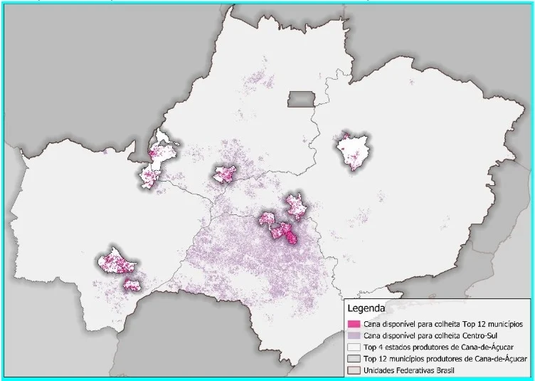 De acordo com o gerente executivo de soluções agro da datatech, “apesar da concentração em alguns polos de grande escala, 90% da área cultivada de Cana-de-acúcar a ser colhida está espalhada por mais de 800 municípios, muitos com participação individual menor, mas que, juntos, garantem a capilaridade da cultura no território”.
