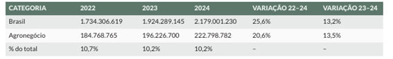 O estudo reforça que o agronegócio brasileiro não é apenas motor de superávits comerciais e produção de alimentos, mas base da sustentabilidade fiscal nacional. Os R$ 931 bilhões arrecadados em 2024 equivalem a mais de cinco vezes o orçamento do Bolsa Família e superam a soma dos orçamentos dos Ministérios da Saúde e da Educação juntos.
