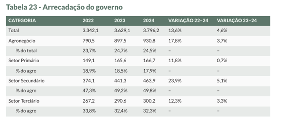 Já o agronegócio apresentou crescimento de 17,8% no mesmo período, superando a média nacional. O desempenho reforça a importância fiscal do setor: um em cada quatro reais arrecadados no Brasil em 2024 veio diretamente do campo.