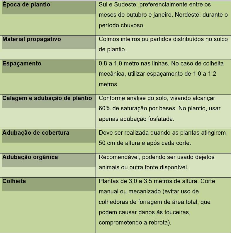 A grande produção de biomassa faz com que a gramínea possa ser utilizada tanto na produção de silagem como fornecida picada verde para o gado. Segundo o pesquisador da Embrapa Mirton Morenz, a vantagem da utilização do capim verde é o seu maior valor nutritivo. “Quando cortado aos cinquenta dias, o capim chega a ter 10% de proteína bruta, índice superior ao da silagem de milho, com cerca de 7%”, explica Morenz. O teor de proteína cai para 6,5%, com o corte aos 90 dias e 5,5%, cortado aos 110 dias. O processo de ensilagem também diminui a quantidade de proteína, que passa a ter um teor pouco acima de 5%.
