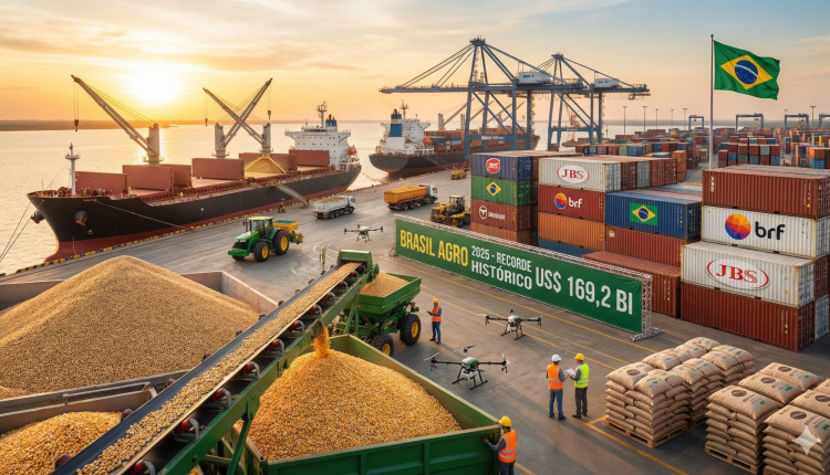 As vendas do agro em 2025 atingiram US$ 169,2 bilhões. Veja os produtos campeões, o salto na carne suína e os novos mercados abertos.