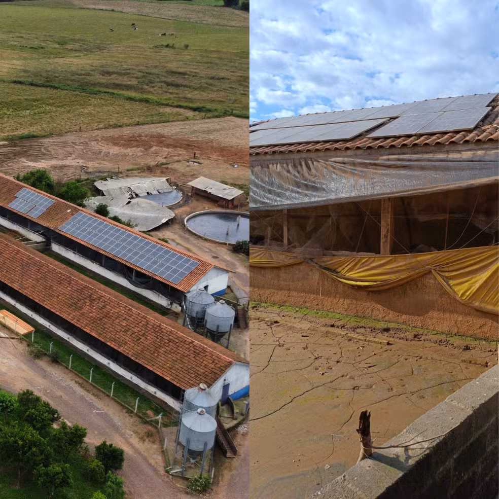 Quando a água abaixou, tudo estava destruído. Os bichos que sobreviveram foram recolhidos pela JBS, empresa a qual a produção de Telmo era integrada.