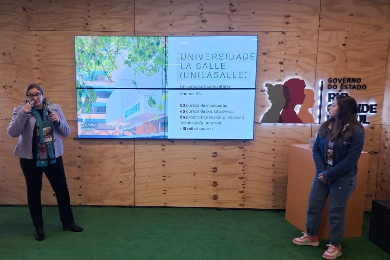 A professora de Ciência da Computação Patrícia Mangan, diretora de Pesquisa e Pós-graduação Stricto Sensu na Universidade La Salle, e a bolsista Geovanna Cristine Corrêa Ribeiro mostraram como o aplicativo, que deve ser lançado em breve, poderá ser utilizado a campo.