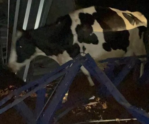 Em outro caso inusitado que aconteceu em 2020, uma vaca foi parar em cima de um telhado em uma propriedade rural em Santa Catarina, do município de Timbó, chegando a derrubar a estrutura.
