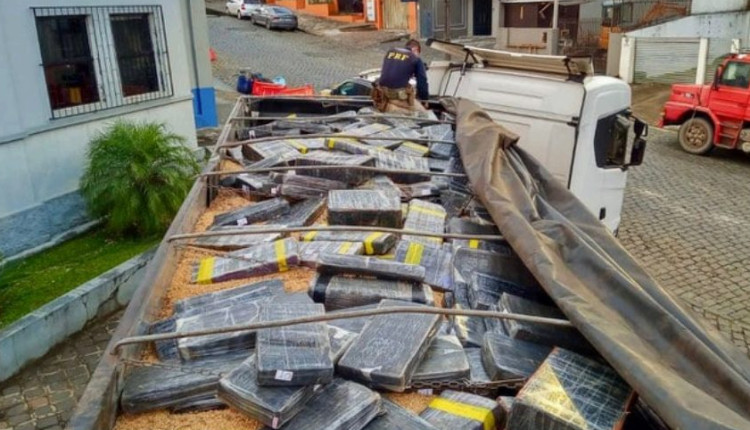 Em uma ofensiva contra o narcotráfico no interior do Paraná, a Polícia Rodoviária Federal (PRF) interceptou, no início da noite desta terça-feira (3), uma carga de 1.609,8 quilos de maconha. O entorpecente estava camuflado em um caminhão que transportava soja pela rodovia BR-277, na altura do município de Irati.