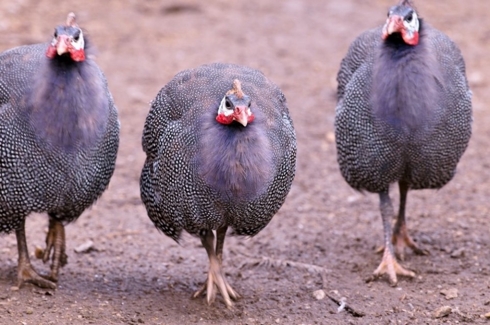 Mesmo domesticada, a galinha da angola conserva traços selvagens: