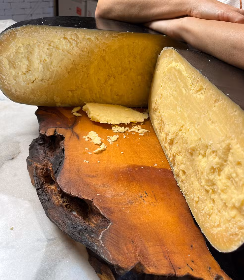 O queijo ‘Belmirão’ foi feito por muitas mãos, na queijaria La Porta. Segundo a mestre queijeira e empresária, Gabriela La Porta, para conseguir que a produção desse certo, foram precisos 500 kg de leite e até forma de queijo doada.