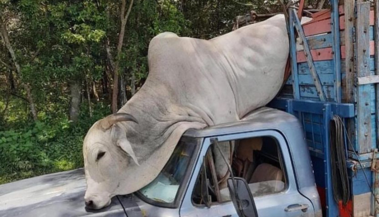 Boi da raça Nelore arrebenta gaiola, cai sobre cabine de caminhão e levanta, novamente, o debate sobre comportamento da raça