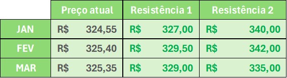 Se a força compradora nos próximos dias ou semanas prevalecer, podemos ver as resistências de preços de curto prazo sendo rompidas e podendo buscar o topo de preço feito em nov/24 nesses contratos. (Tabela 2).