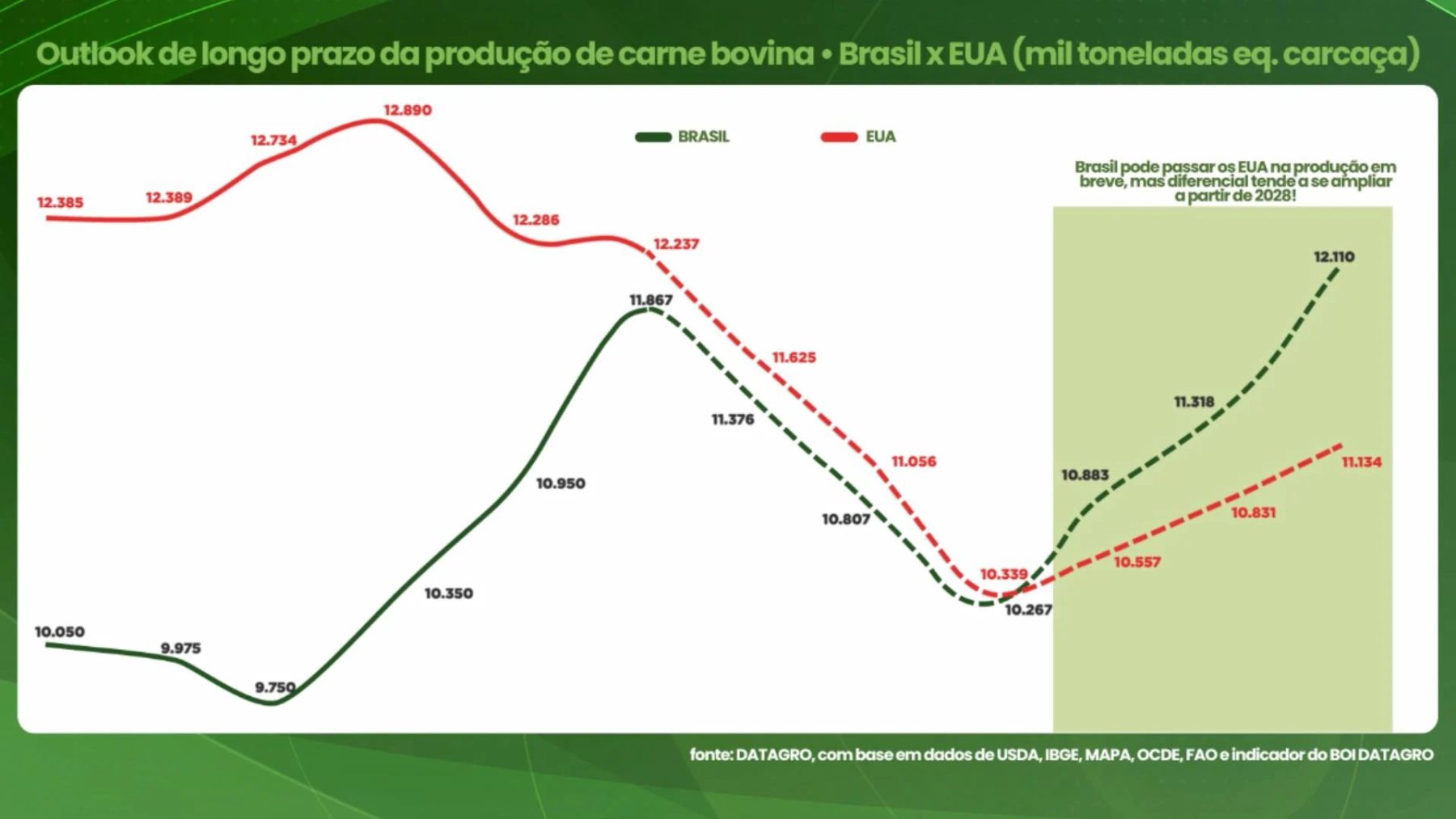 A análise da Datagro considera o cenário de escassez global de bovinos, especialmente na América do Norte, onde os Estados Unidos enfrentam a maior crise dos últimos sete anos, com o menor rebanho desde então. Projeções indicam que os estoques mundiais devem atingir 607 milhões de cabeças até o fim de 2025, o menor patamar da história recente.