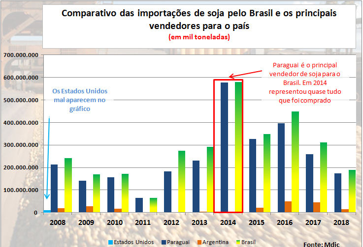 Historicamente há 10 anos o Brasil não importa volumes acima de mil toneladas dos Estados Unidos. Normalmente Paraguai e Argentina são os principais mercados para atender demandas pontuais do Brasil. Vale ressaltar que o Brasil nunca importou 1 milhão de toneladas em um ano. Os maiores montantes das últimas dez temporadas aconteceram em 2014, com 579 mil toneladas; e em 2016, com 448 mil toneladas, quando o país registrou uma das mais duras quebras de safra dos últimos tempos.