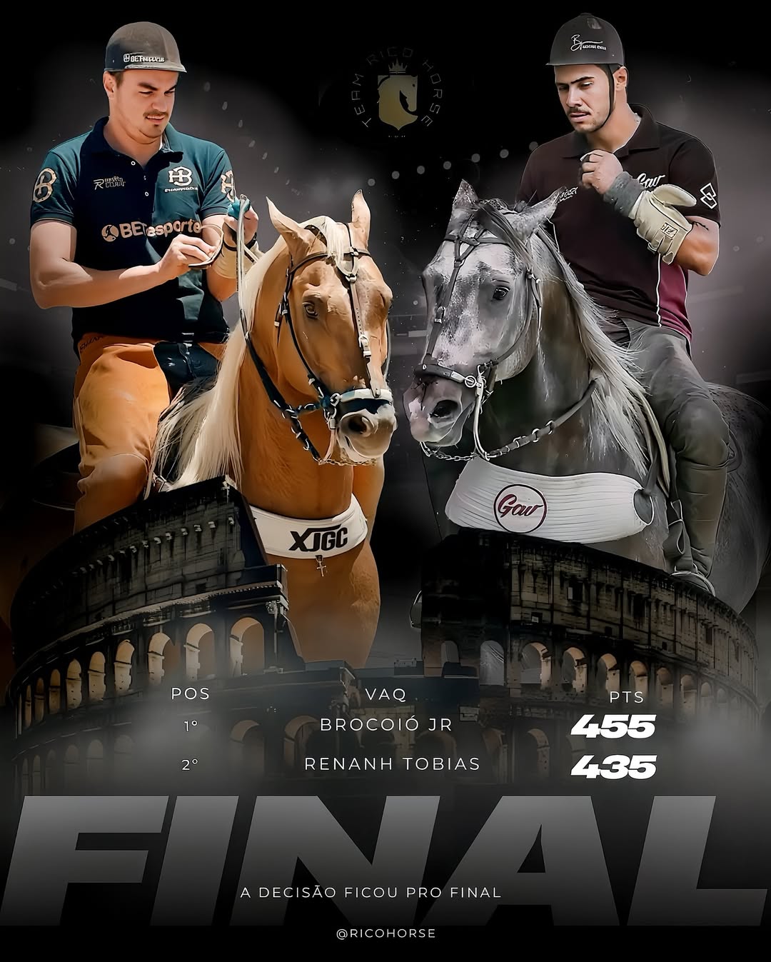 Na categoria mais alta do esporte, a disputa segue aberta: Categoria Profissional — Vaqueiro de Puxar Pontuação Atual 1º – Brocoió Jr 455 pts 2º – Renan Tobias 435 pts 3º – Valter Xavier 420 pts 4º – Dheovane Almeida 385 pts 5º – Vitor Rayara 360 pts