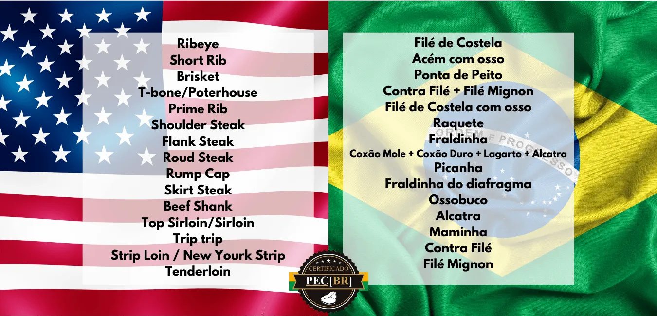 Muitos consumidores brasileiros já se depararam com nomes em inglês nos açougues ou cardápios, o que pode gerar confusão na hora da compra. Isso acontece porque algumas regiões do Brasil, especialmente nas grandes cidades e restaurantes especializados, adotam a nomenclatura americana.