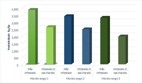 De modo geral, os resultados desse estudo, que utilizou híbridos comerciais comumente plantados no Brasil, mostraram suscetibilidade do sorgo granífero à broca-da-cana-de-açúcar, também conhecida por broca-do-colmo, sob altos níveis de infestação, causando perdas substanciais na produtividade quando não tratados com o inseticida.