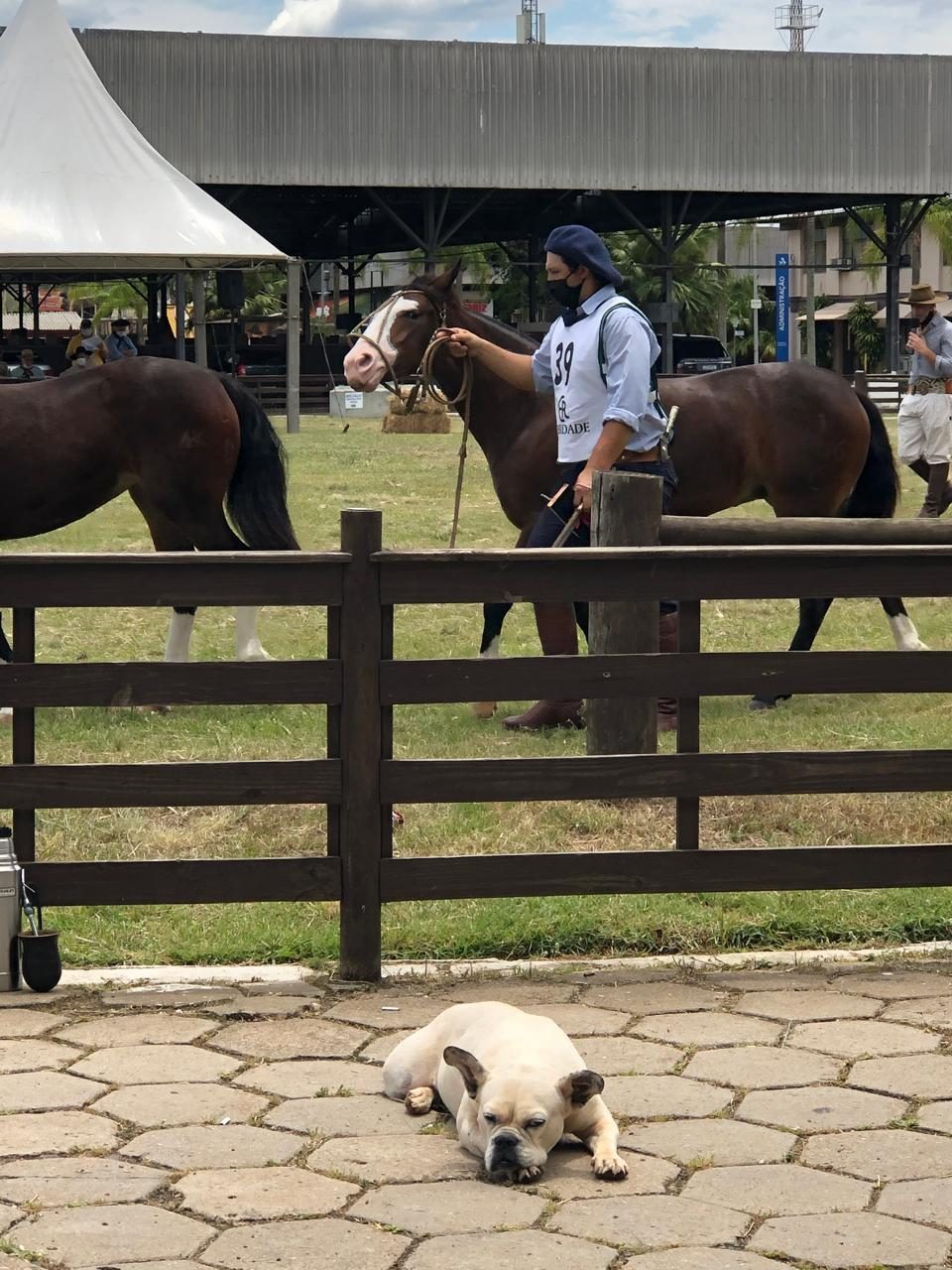 A preparação dos equinos para participação de provas é fator chave para obtenção de bons resultados desportivos, já que o estresse pode prejudicar seu desempenho e até mesmo impactar sua saúde, além de interferir no seu bem-estar. Proprietária de uma cadela da raça Buldogue Campeiro de nome Braza, Márcia Schultz, do Centro de Treinamento Don Erno, de Gravataí (RS), destaca a relação dela com animais no CT.