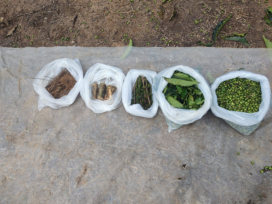 Para quantificar o carbono estocado na planta, foram avaliados 150 cafeeiros adultos em dez propriedades rurais de cinco municípios da região das Matas de Rondônia. As análises laboratoriais mostraram que a maior parte do carbono está concentrada no tronco (36,4%), seguido por raízes (24,3%), folhas (23,8%), galhos (10,1%) e frutos (5,4%).