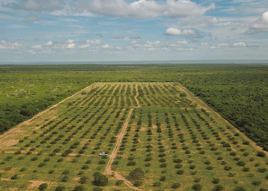 O recomeço veio em 2016, com o replantio em grande escala, usando clones de cajueiro-anão. Junto com as mudas, a família adotou práticas adequadas de manejo: podas, nutrição, controle preventivo de pragas e mecanização de parte dos tratos culturais. O resultado não tardou a aparecer. “Quando passamos a adotar esse manejo, conseguimos elevar a produtividade por hectare e alcançamos frutos e castanhas de qualidade superior”, conta Najara.
