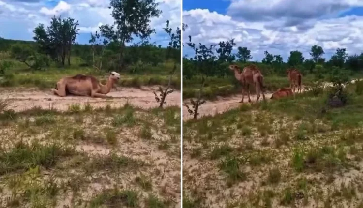 O vídeo que revelou a presença dos camelos foi gravado por um morador da região, que demonstrou surpresa ao se deparar com a cena.