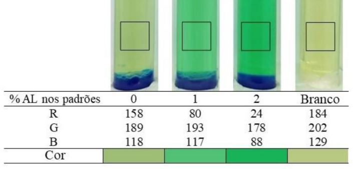 No estudo, foram capturadas imagens de soluções resultantes de reações químicas cujas cores variaram conforme os valores de AL e IP. Essas fotografias foram analisadas por aplicativos gratuitos que convertem a cor em dados numéricos, com os quais foram construídos modelos matemáticos para a determinação dos parâmetros de qualidade. Os métodos propostos usaram até 98% menos produtos químicos, tornando a determinação da qualidade ambientalmente amigável e econômica, além de serem mais simples e rápidos do que os métodos oficialmente empregados.