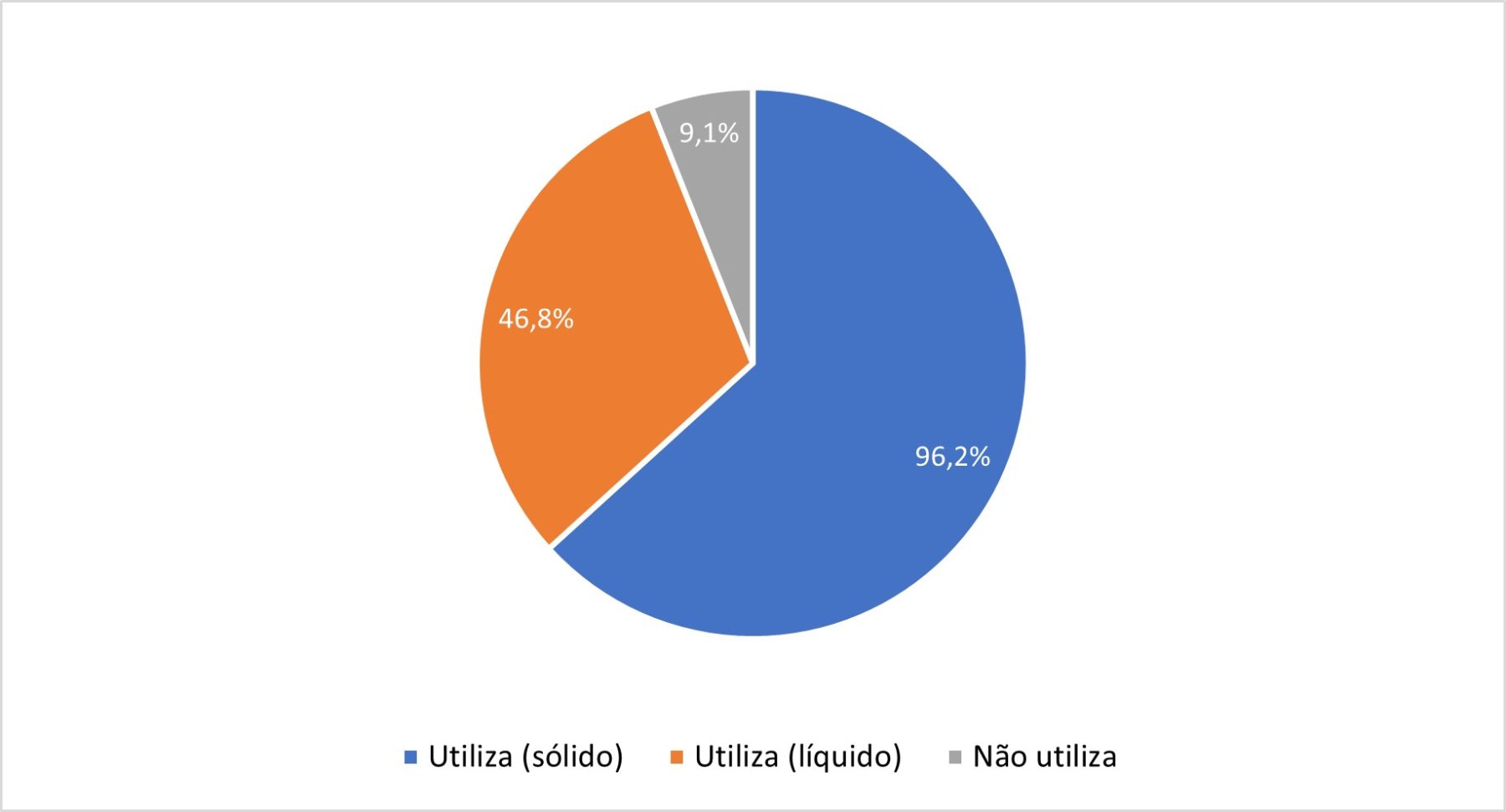 Entre os que coletam, 96,2% utilizam apenas a fração sólida, e 46,8% aproveitam também a fração líquida. No entanto, 9,1% não destinam uso aos dejetos coletados (figura 2)
