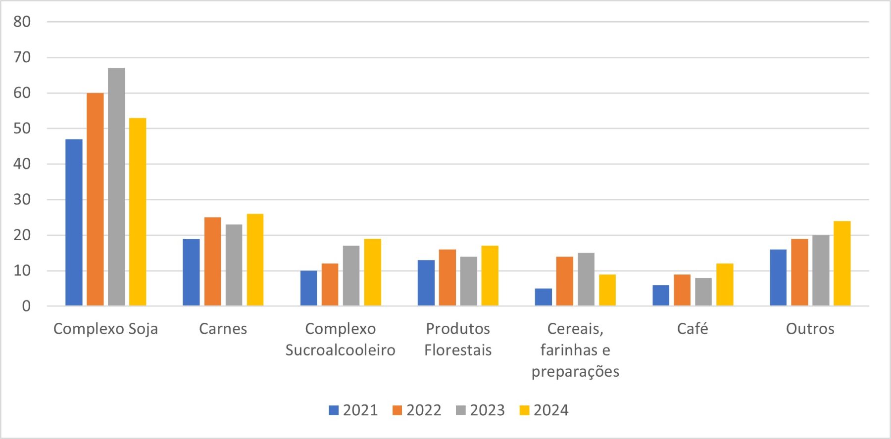 Apesar das quedas mencionadas, o Brasil alcançou ganhos significativos em outros produtos do agronegócio (figura 2).