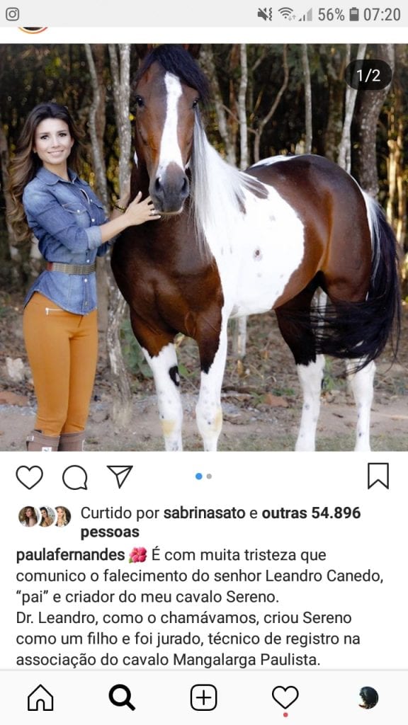 Quem também lamentou a morte do casal foi a cantora Paula Fernandes, que usou suas redes sociais para manifestar a sua tristeza, pois o fazendeiro Leandro foi o criador de seu cavalo de nome Sereno.