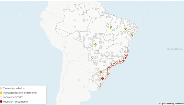 A notificação consta na última atualização oficial dos focos monitorados da doença