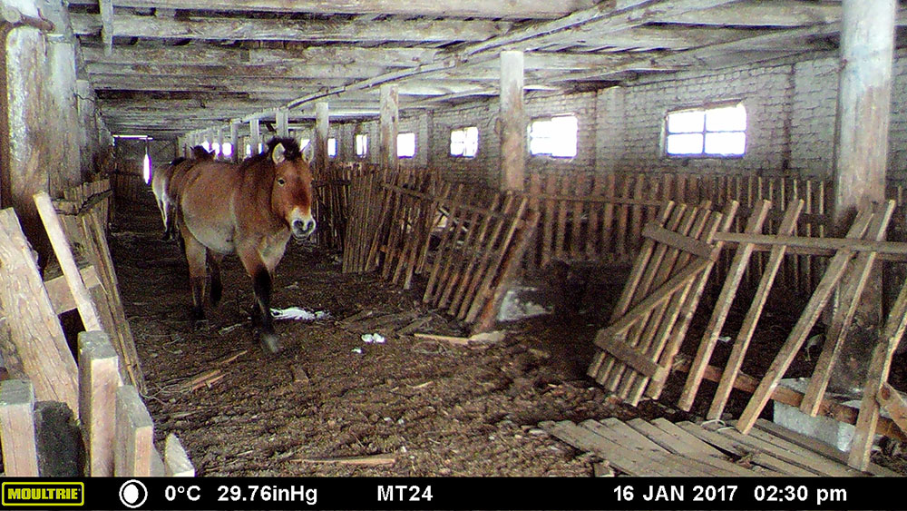 Imagens de armadilhas fotográficas mostram os animais entrando em construções abandonadas, algo incomum para a espécie, evidenciando uma mudança comportamental significativa .