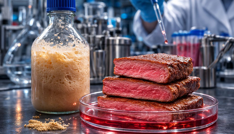 A celulose bacteriana produzida a partir dos resíduos da cerveja funciona como suporte comestível, permitindo que as células musculares se desenvolvam com textura e consistência semelhantes às da carne convencional.