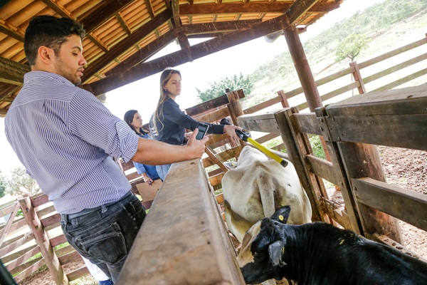 Nesta terça-feira (17), técnicos do Instituto CNA testaram o aplicativo desenvolvido para a realização de vistorias em propriedades rurais, em 223 cabeças de gado da fazenda Sanga Puitã, onde funciona a ESAI. O rebanho recebeu em janeiro deste ano um brinco e um botom contendo chip eletrônico com as informações dos animais.