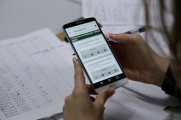 A coleta das informações é feita por meio de uma leitora de radiofrequência que identifica a numeração e mostra os dados dos animais vistoriados no aplicativo offline usado pelo vistoriador. Essas informações ficarão disponíveis aos produtores na Plataforma de Qualidade CNA, software integrado à Plataforma de Gestão Agropecuária (PGA) do Ministério da Agricultura, Pecuária e Abastecimento (Mapa).