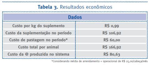 A elevação do preço dos insumos e, consequentemente, maior preço da diária de confinamento justificou a estratégia de elevar o peso de entrada desses animais por meio da suplementação proteico-energética, resultando em bom desempenho e custo de @ produzida mais favorável.