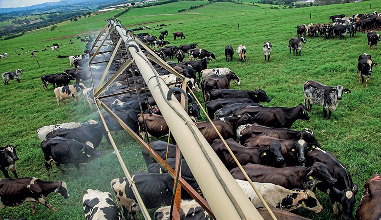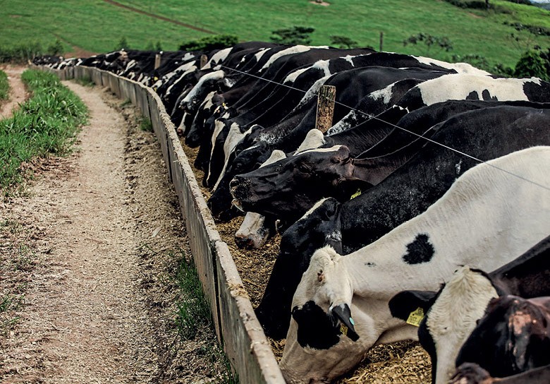 No total, a Santa Luzia abriga 6 mil animais. O sistema até agora é a criação intensiva a pasto. Em média, cada vaca produz de 27 a 28 litros por dia. A fazenda é dividida em 24 piquetes, e cada um recebe, em média, 150 cabeças. Os animais que não são servidos por pivôs pastam em piquetes sombreados por eucaliptos, que recebem irrigação por malha. A cada 12 horas, ou seja, a cada ordenha, as vacas mudam de piquete.