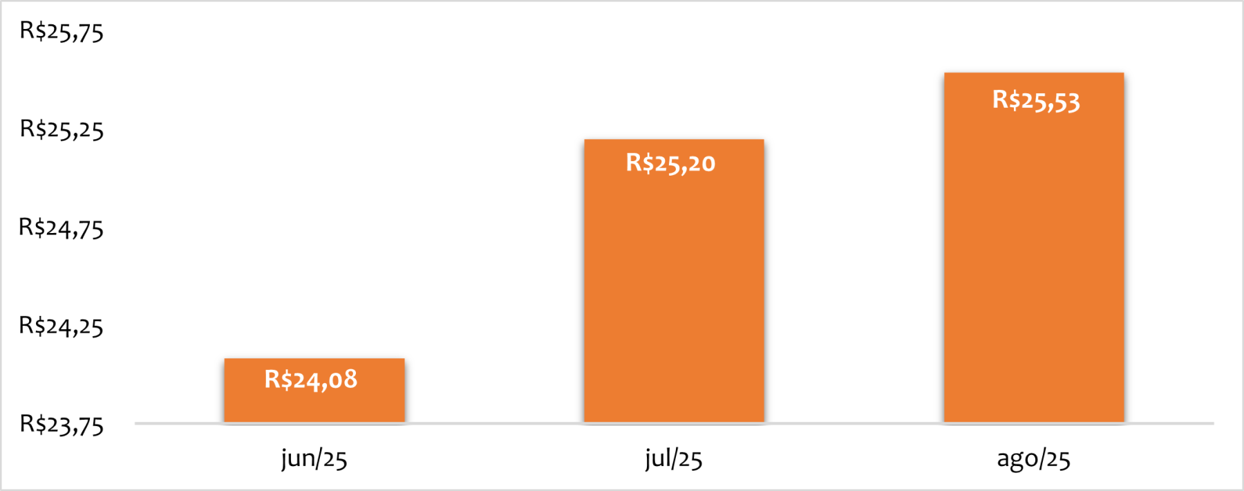 Preços médios nominais por mês, de 2022 a 2025*, do protocolo hormonal** descrito na figura 1.