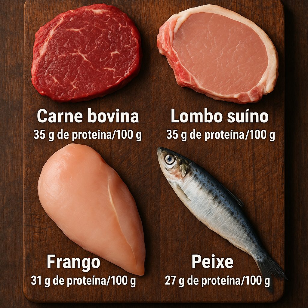 Segundo dados publicados pelo portal VivaBem, do UOL, a carne vermelha e o lombo suíno lideram com cerca de 35 gramas de proteína a cada 100 gramas de alimento, ficando tecnicamente empatadas. Em seguida, aparecem o frango, com 31 g, e o peixe, com 27 g por porção.