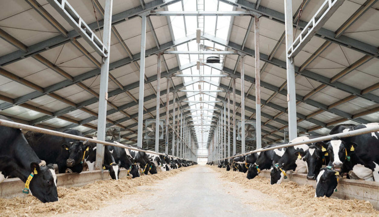 Grande parte da área é destinada ao alojamento e conforto térmico das vacas. Os estábulos são equipados com sistemas de aspersão e resfriamento, capazes de manter a temperatura ambiente interna em torno de 27 °C, mesmo sob calor extremo. Essa adaptação é essencial para manter o bem-estar dos animais e garantir níveis de produtividade consistentes.