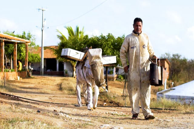 Equipado com um traje anti-abelha feito pelo próprio dono, Boneco é um jumento apicultor que participa da colheita e do transporte de mel no sertão cearense, unindo proteção, logística e parceria no campo.