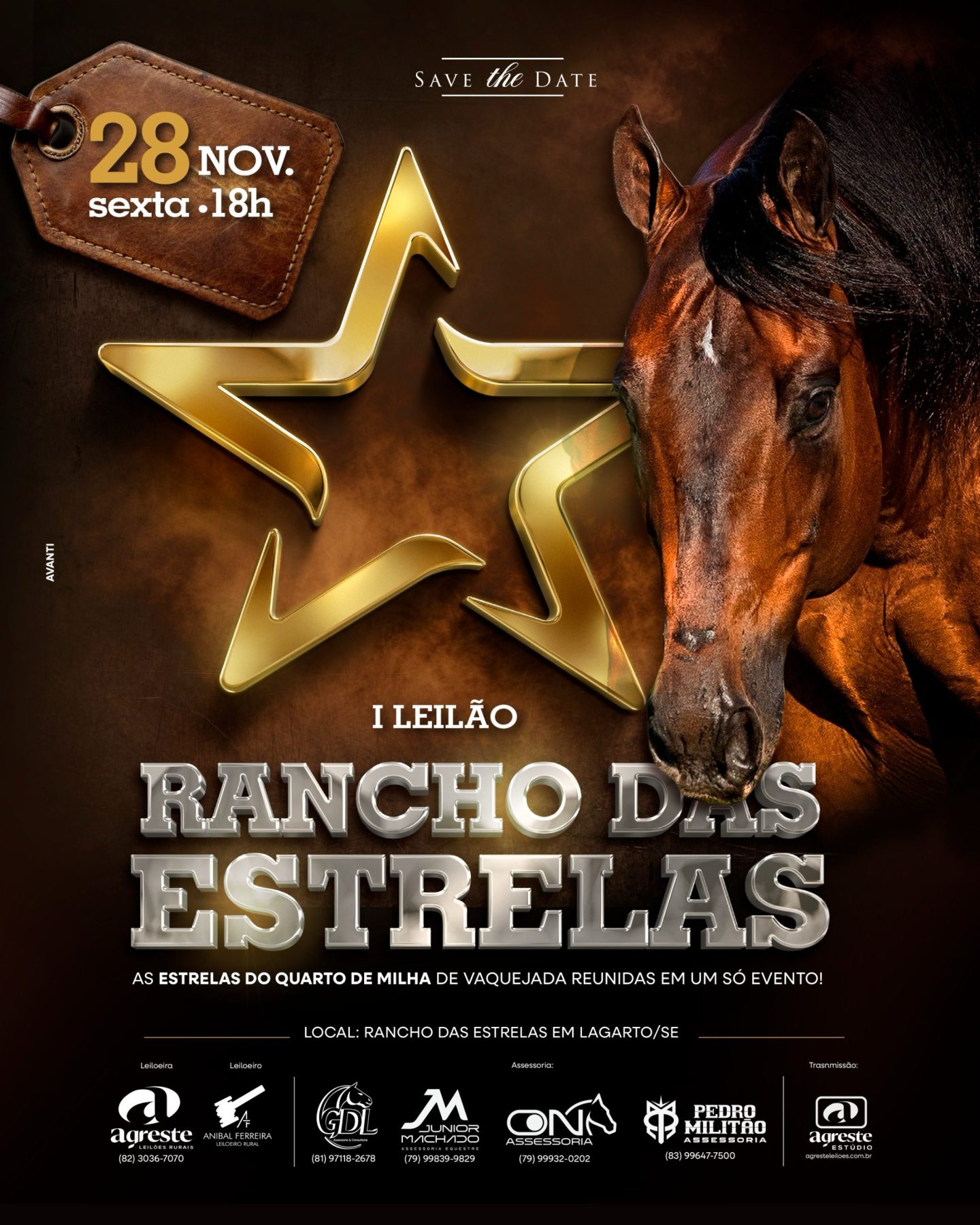 O 1º Leilão Rancho das Estrelas e Convidados será uma grande celebração da genética Don Shady Diego e da força do Quarto de Milha nordestino. O evento marcará uma nova fase para o Rancho das Estrelas, reunindo criadores, competidores e apaixonados pela vaquejada em uma noite de grandes negócios e homenagens à linhagem que mudou a história do esporte.