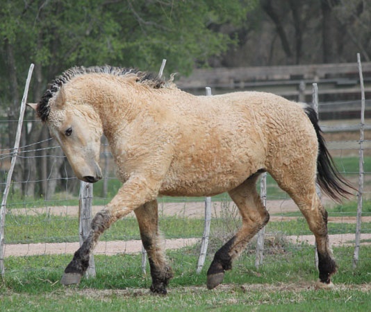 Outro traço curioso é sua capacidade de perder completamente a crina e parte da cauda durante o verão, com novos fios crescendo apenas no inverno. Acredita-se que essa característica seja uma adaptação natural para evitar o emaranhamento dos cachos em espiral. No corpo, os pelos mudam de textura conforme as estações — lisos e ondulados no calor, cacheados e densos no frio, criando padrões únicos que lembram veludo ou ondas marmorizadas.
