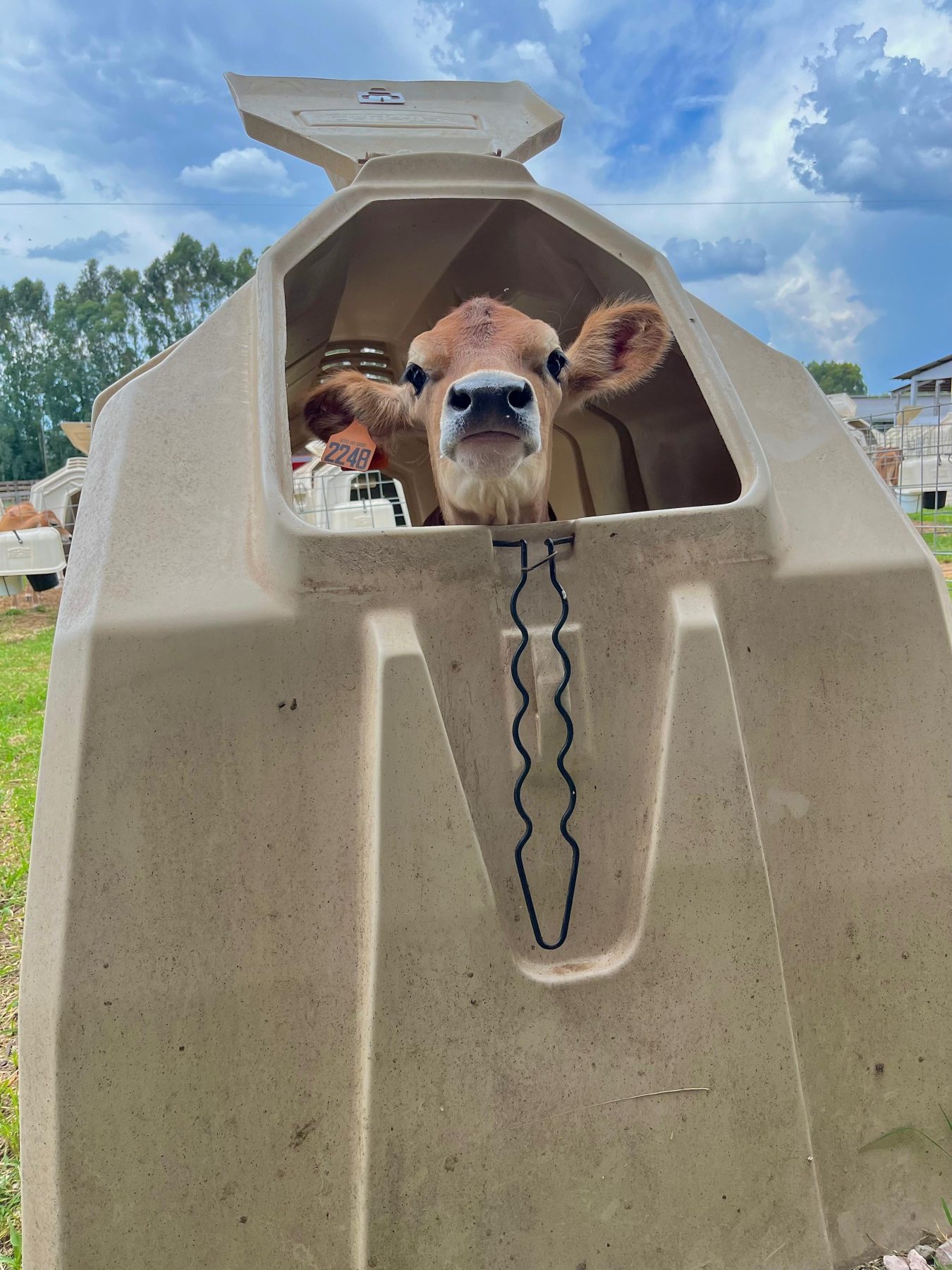 O bezerreiro também é uma área de excelência, com alojamentos individuais padrão “Calf-Tel” na fase de aleitamento, que podem ser totalmente deslocados para uma higienização completa. Esse sistema garante um manejo sanitário eficiente e seguro para as bezerras. Após essa fase, os animais são transferidos para um bezerreiro coletivo coberto e, na sequência, para piquetes amplos. Nesses piquetes, eles têm sombra garantida por árvores em um sistema silvipastoril com eucaliptos, que integra práticas sustentáveis ao manejo e proporciona conforto térmico para o gado jovem.